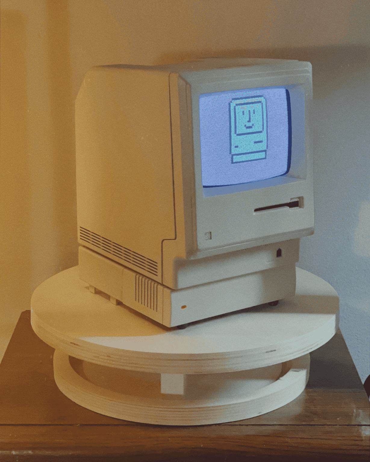 The enclosure references early compact personal computers, but the function is contemporary. Old display technology carrying current signals. Familiar form, modern role.